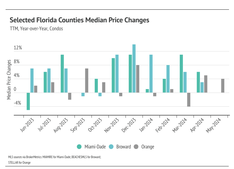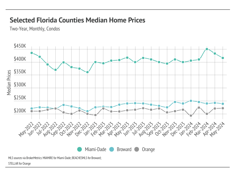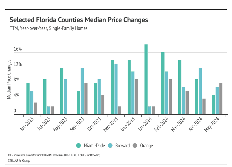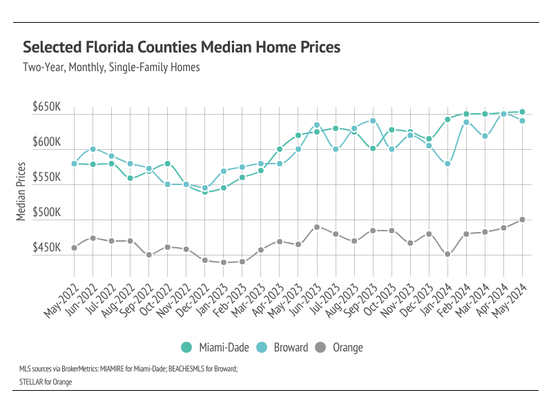 Median single-family home prices in Miami-Dade and Orange hit all-time highs in May