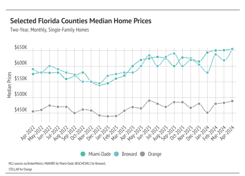 Median single-family home prices in Miami-Dade and Broward hit all-time highs in April