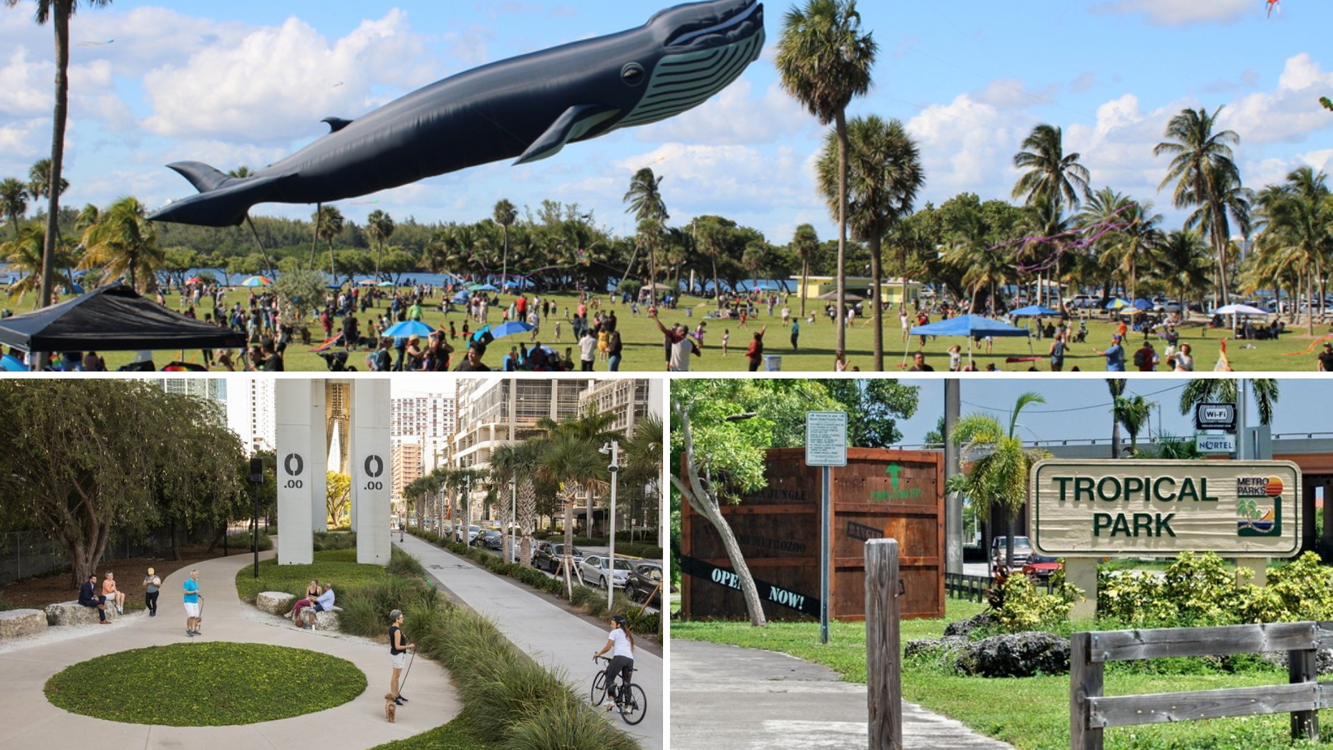 A modern linear park beneath the Metrorail, ideal for cycling, yoga, running, and community events year-round.
